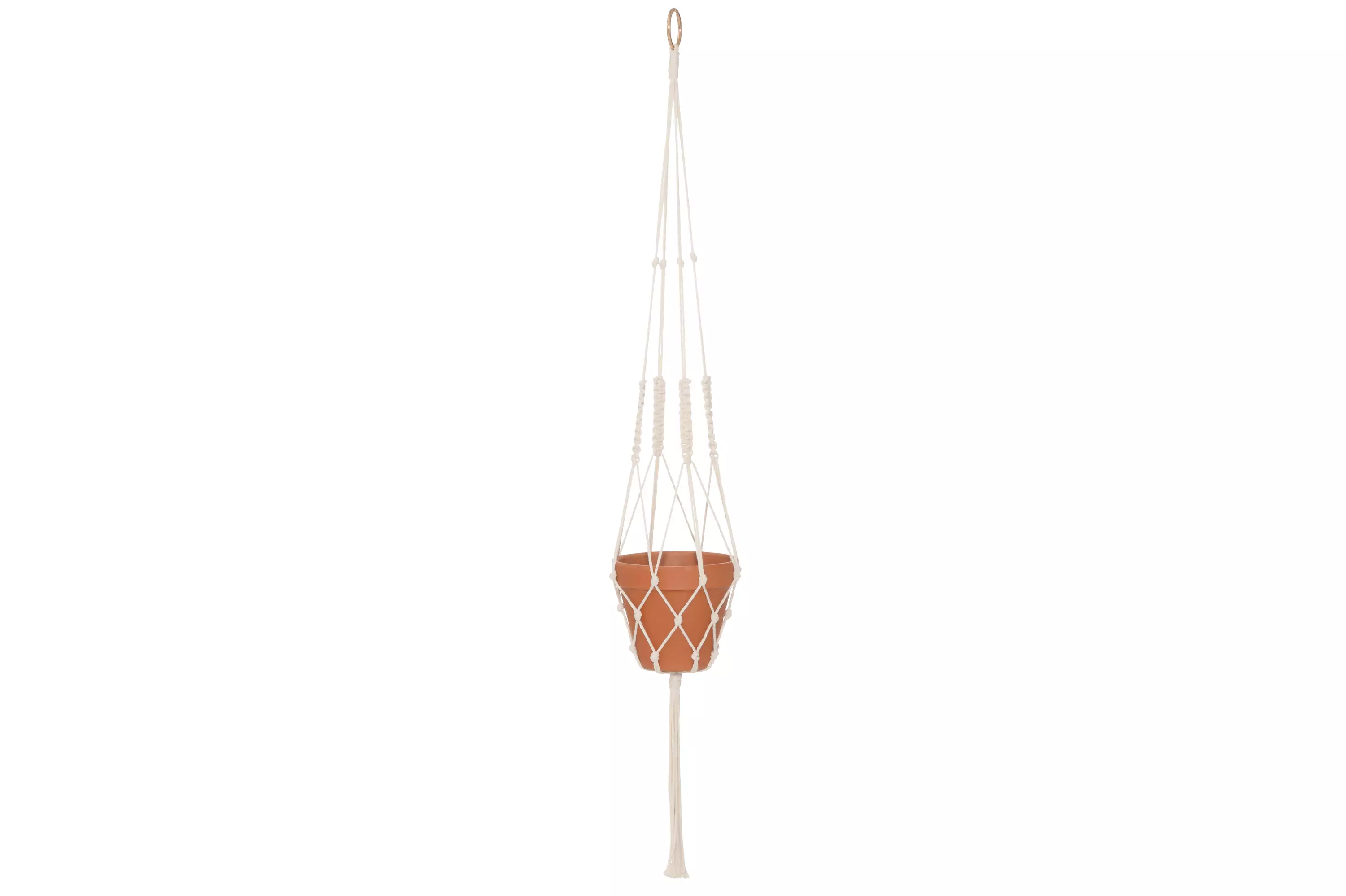 4Living 4Living Naruamppeli 107 cm luonnonvalkoinen – Kaunis luonnonvalkoinen makramee naruamppeli. Valmistettu kestävästä materiaalista (puuvilla, polyesteri, rauta), väri: luonnonvalkoinen. Toimiva ja tyylikäs valinta kotiin tai lahjaksi.