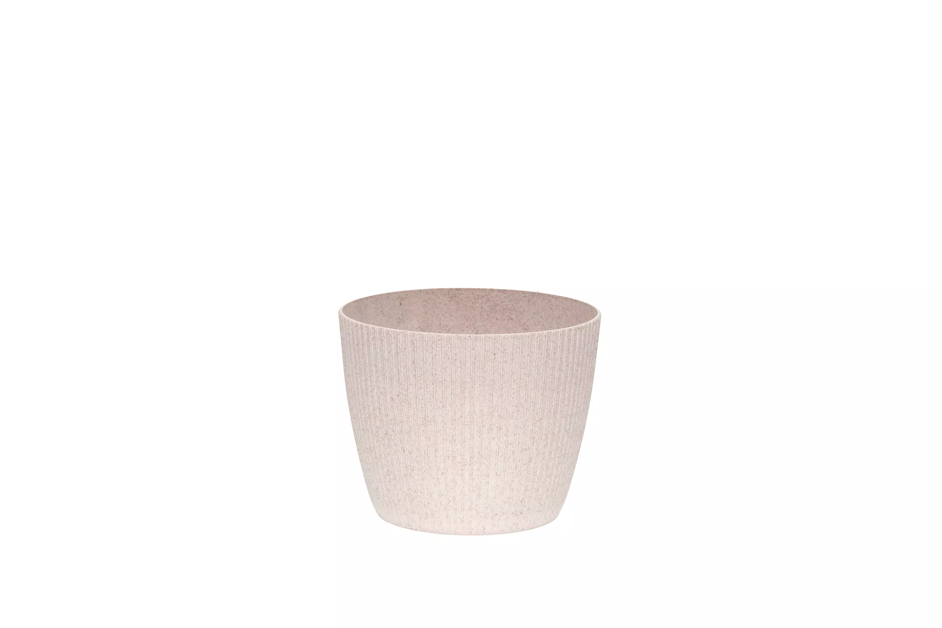 Tyylikäs ja kevyt suojaruukku sisä- ja ulkokäyttöön. Ruukun pinnassa hillitty pystyraidoitus. Muovista 40 % korvattu kierrätyspuukuidulla. Puukuidun alkuperä: Teollisuuden sivutuote.