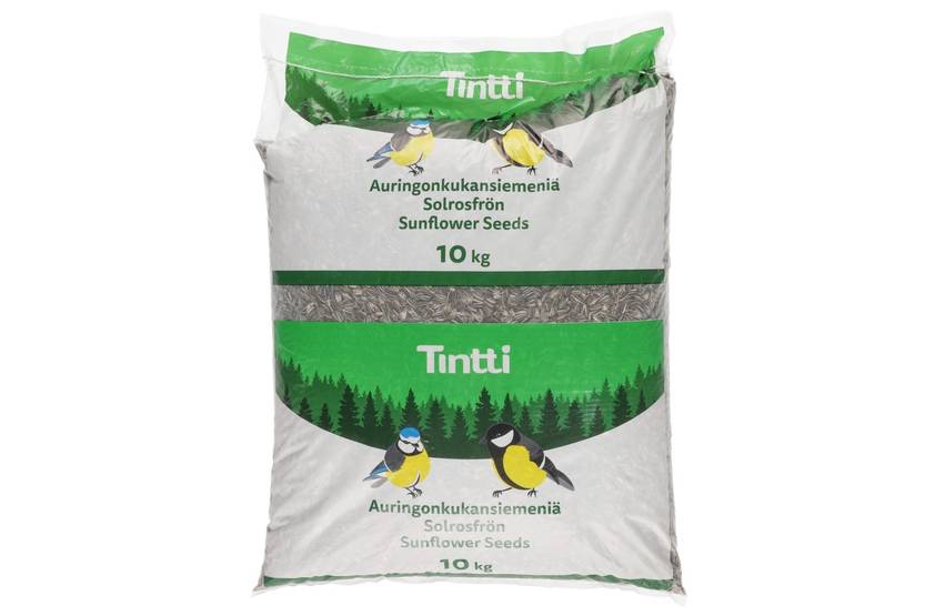 10kg säkki auringonkukansiemeniä luonnonlintujen ruokintaan. Maistuvat esimerkiksi punatulkuille, tiaisille ja viherpeipoille.