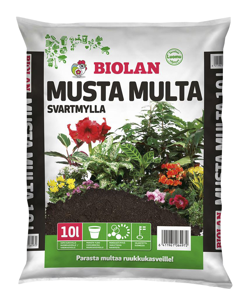Musta Multa on luonnonmukainen multaseos kaikille kukkiville ruukkukasveille ja viherkasveille. Kompostoimalla kypsytetty multaseos on lannoitettu luonnonmukaisella broilerinlanta-turvekompostilla ja kalkittu magnesiumpitoisella kalkkikivijauheella. Musta Multa on runsaasti pitkävaikutteisia ravinteita sisältävä yleiskukkamulta.