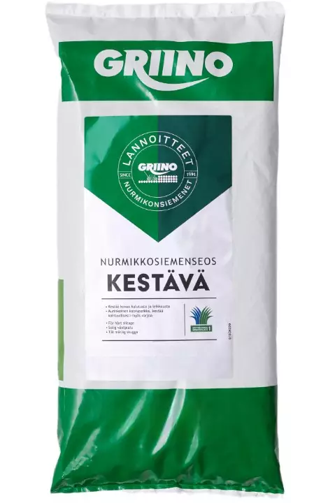 Kestävä-nurmikko on kovaa kulutusta kestävä seos ja sopiikin aktiivisten ihmisten pihoihin. Ei vaadi yhtä huolellista hoitoa kuin Paroninurmikko. Aurinkoinen kasvupaikka, joskin kestää kohtuullisesti myös varjoa.