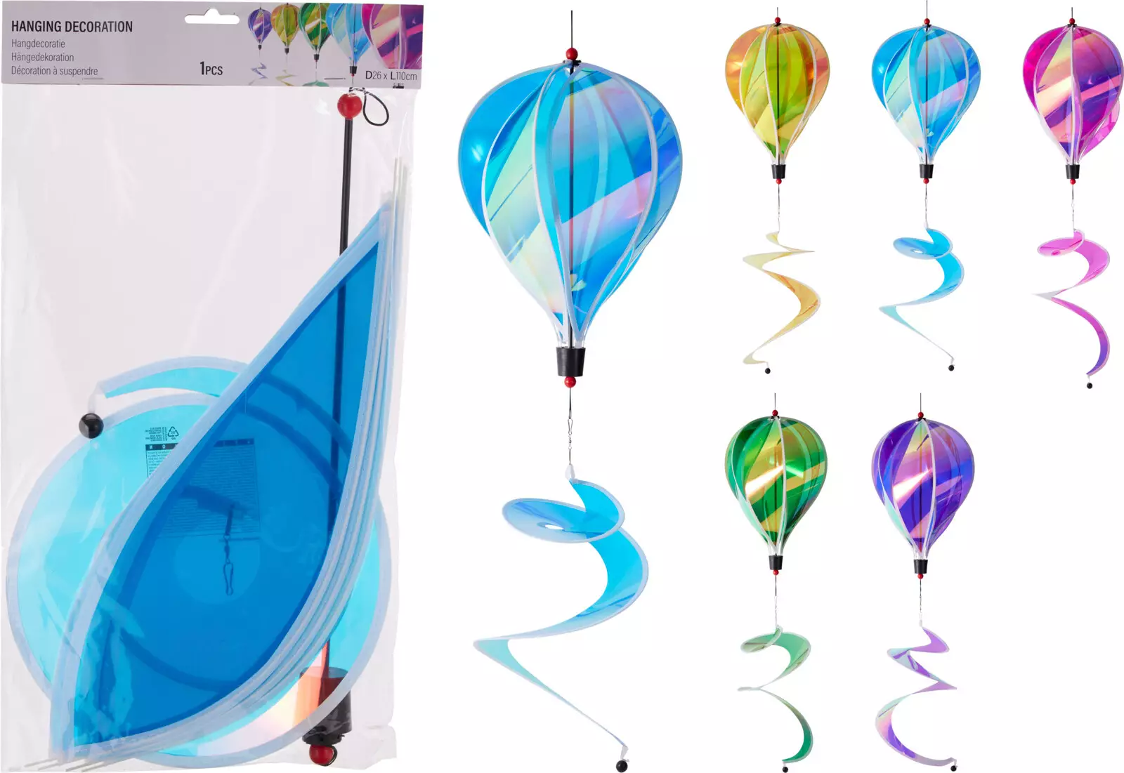 Iloinen kuumailmapallon muotoinen tuulimylly tuo liikettä ja väriä pihaan, terassille tai kukkapenkkiin. Pyörivä rakenne herättää huomiota ja tuo leikkisän ilmeen ulkotiloihin.