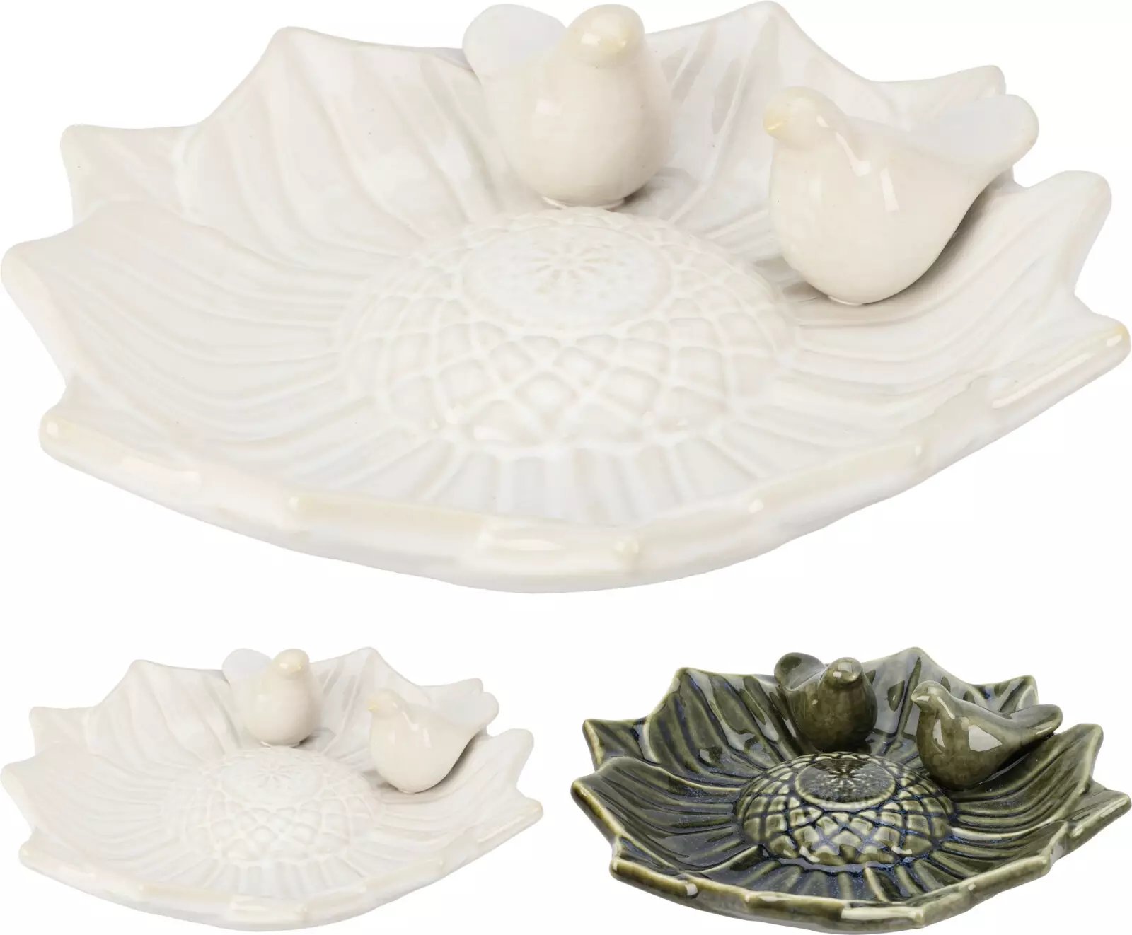 Kaunis kukkamuotoinen linnunruokinta-astia tuo elämää pihaan ja auttaa lintujen ruokinnassa. Keraaminen materiaali on helppo pitää puhtaana ja kestää hyvin ulkokäyttöä.