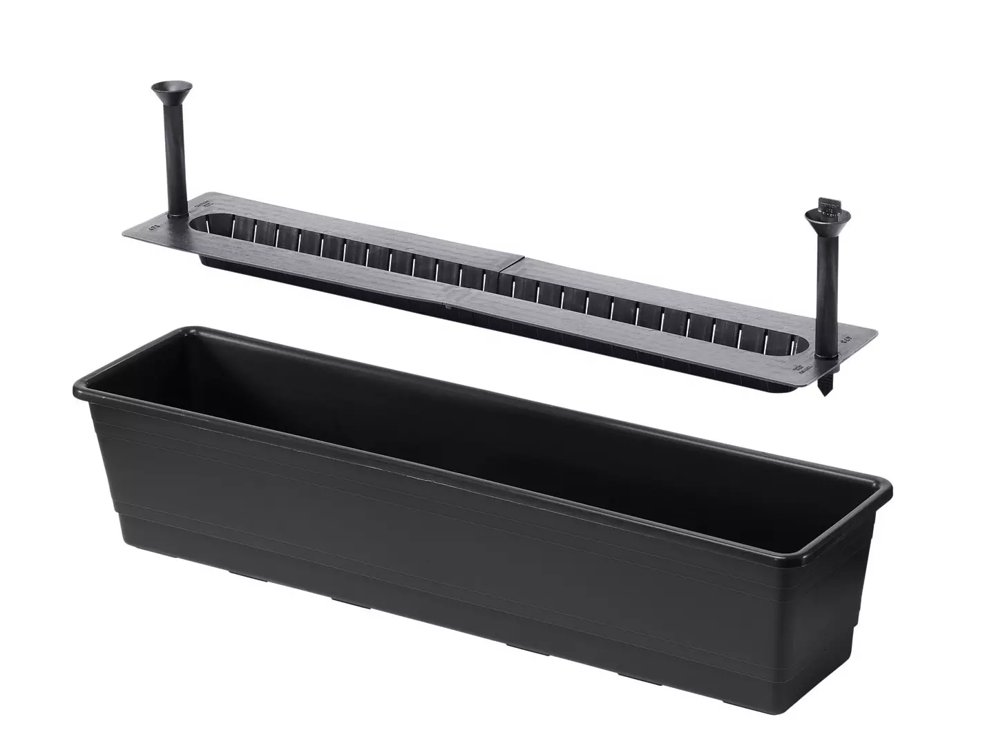 Altakastelujärjestelmän mittatikku näyttää selkeästi, milloin vettä tulee lisätä, ja ylitäyttösuoja estää kasvien juuria seisomasta vedessä. Tarvittaessa laatikon molemmissa päissä olevien merkkien kohdalle voidaan tehdä reiät, jotta ylimääräinen sadevesi pääsee valumaan pois – tämä tekee laatikosta erinomaisen vaihtoehdon myös ulkona sijaitseville parvekkeille ja terasseille.