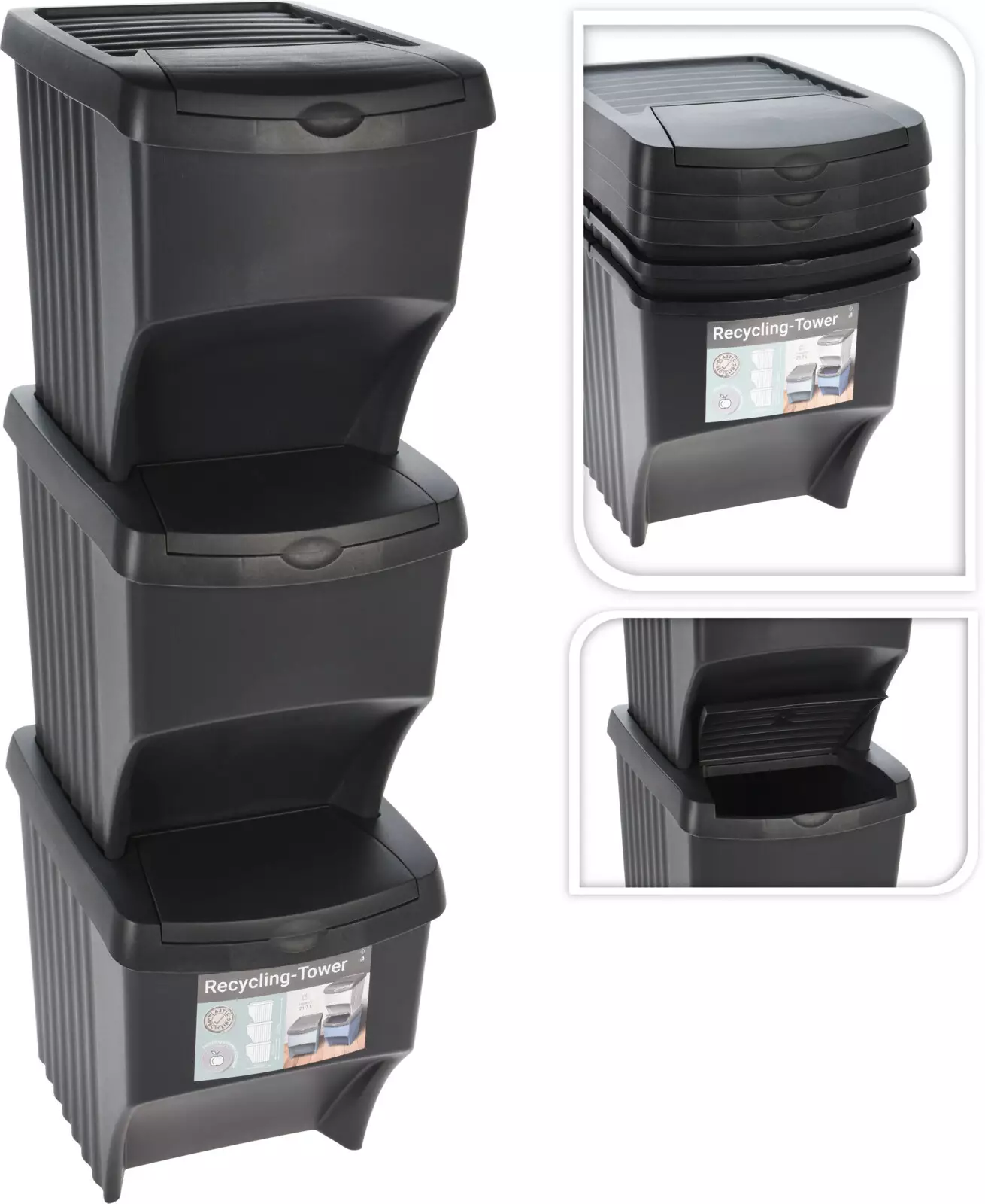 **Pinottava Jätesäiliö 3-osainen** Tämä käytännöllinen ja ympäristöystävällinen pinottava jätesäiliösetti on täydellinen ratkaisu kotona tai toimistossa tapahtuvaan jätteiden... Lue lisää