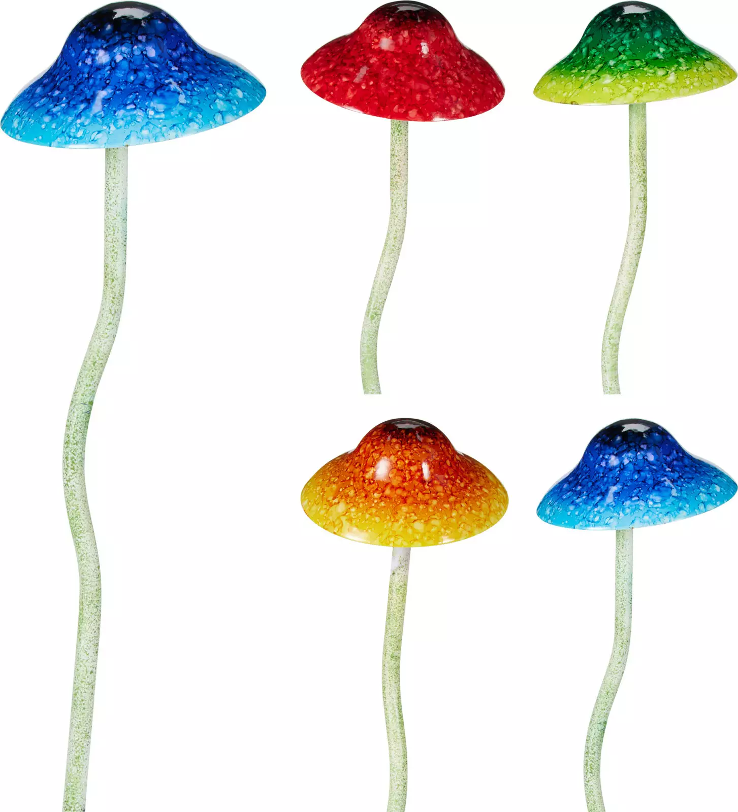 Hauska ja värikäs sienikoriste puutarhaan, kukkapenkkiin tai ruukkuistutuksiin. Metallinen rakenne kestää ulkokäyttöä ja tikku tekee koristeen sijoittelusta helppoa.