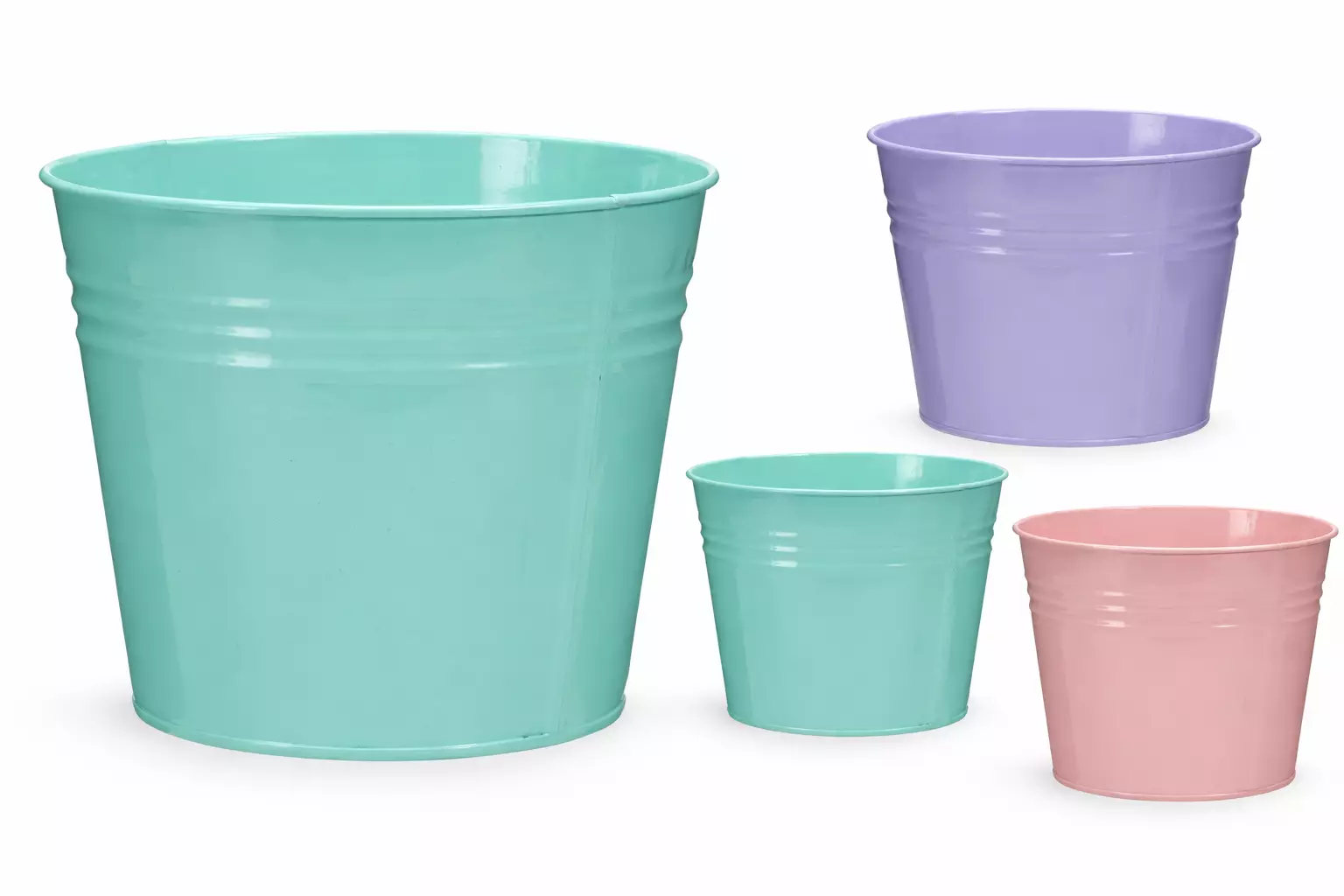 Piristä parveketta, terassia tai sisätiloja kiiltävällä metallikukkaruukulla. Galvanoitu rautarakenne on kevyt mutta kestävä ja sopii monenlaisille kasveille.