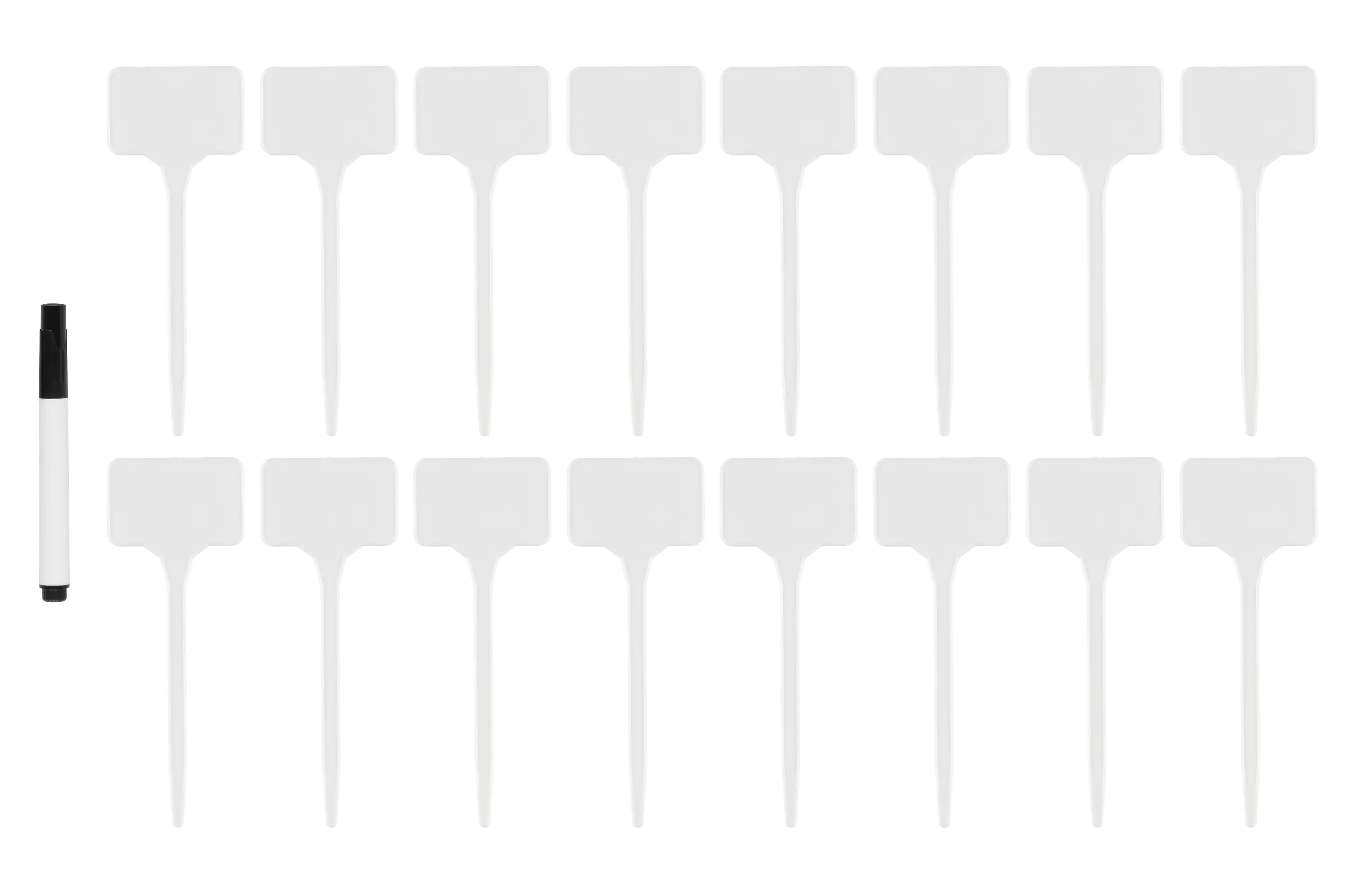 16 kpl muovisia 15 cm korkeita nimikylttejä, joiden avulla taimet on helppo merkitä tunnistamista varten. Mukana merkkauskynä.