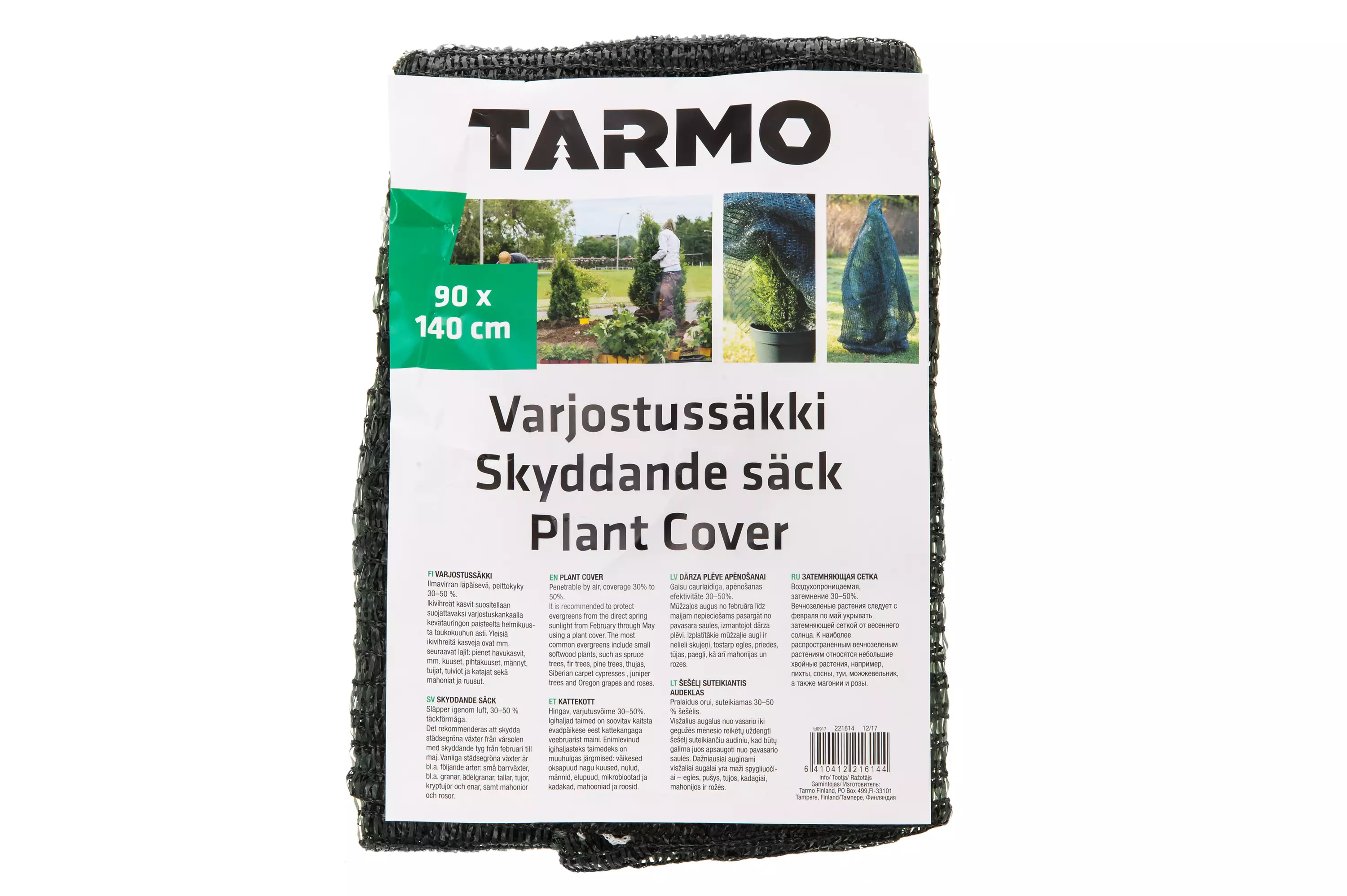 Varjostussäkki suojaa ikivihreät kasvit kevätauringon paahteelta. Ilmavirran läpäisevä, 30-50 % peittokyky. UV-takuusuojattu. 37 g/m².