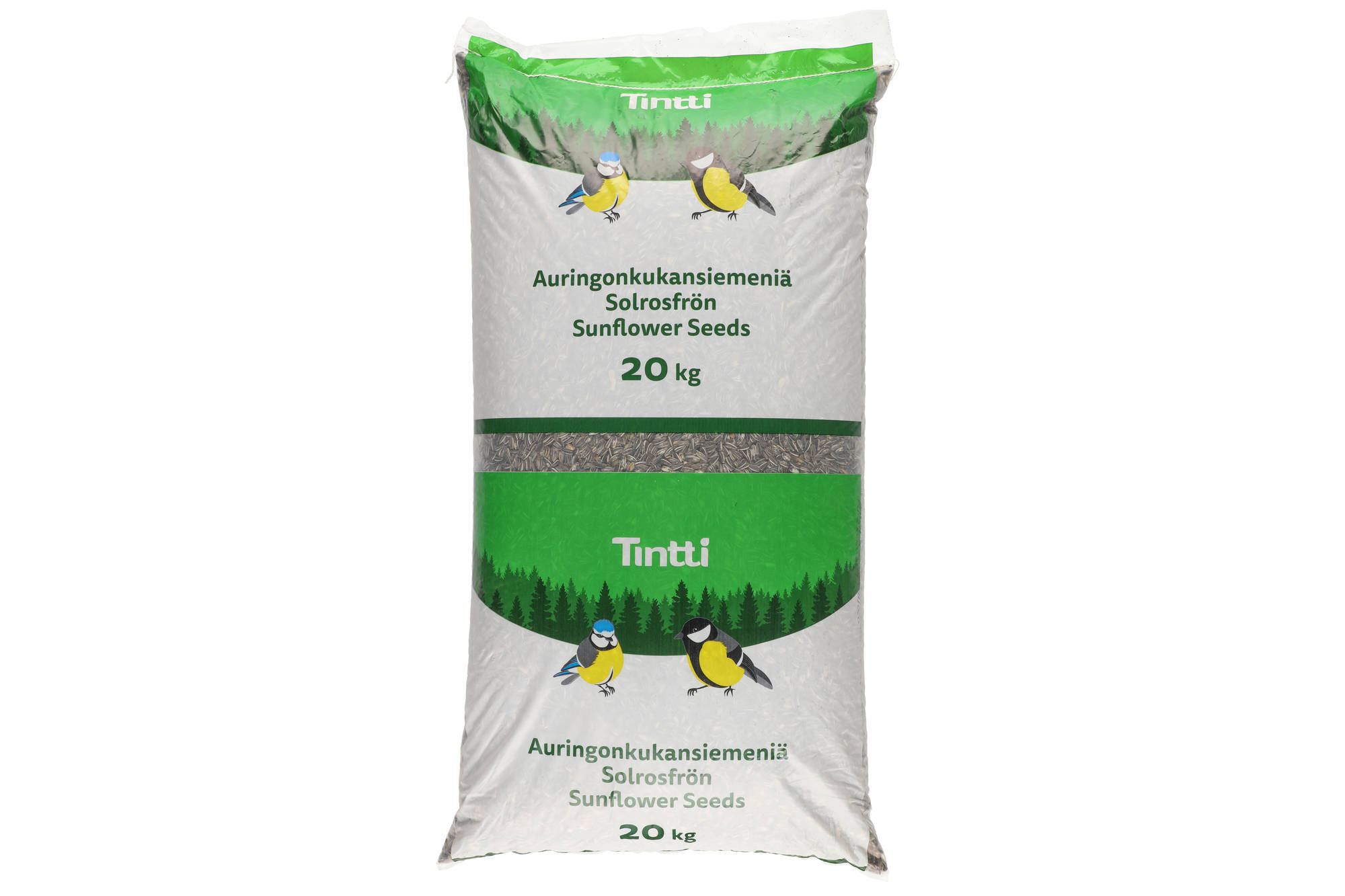 Tintti auringonkukansiemeniä 20kg säkissä. Soveltuvat ulkolintujen ruokintaan ja niitä on hyvä käyttää esimerkiksi siemenautomaatissa tai jyväsyöttimessä.