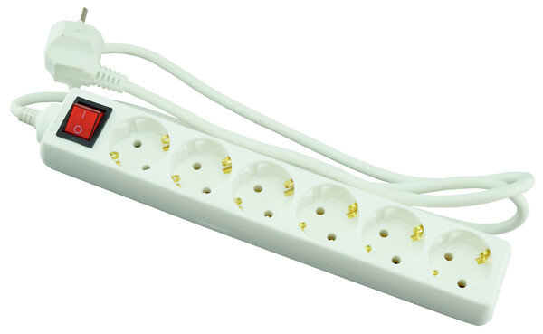 Kytkimellä ja lapsiturvalla varustettu jatkojohto sisäkäyttöön.