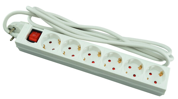 Kytkimellä ja lapsiturvalla varustettu jatkojohto sisäkäyttöön.