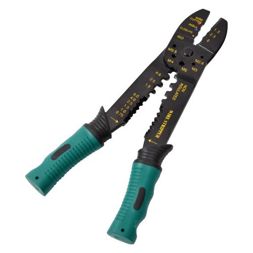 kaapelin leikkaukseen ja kuorintaan, johtoliittimien ja napojen puristamiseen