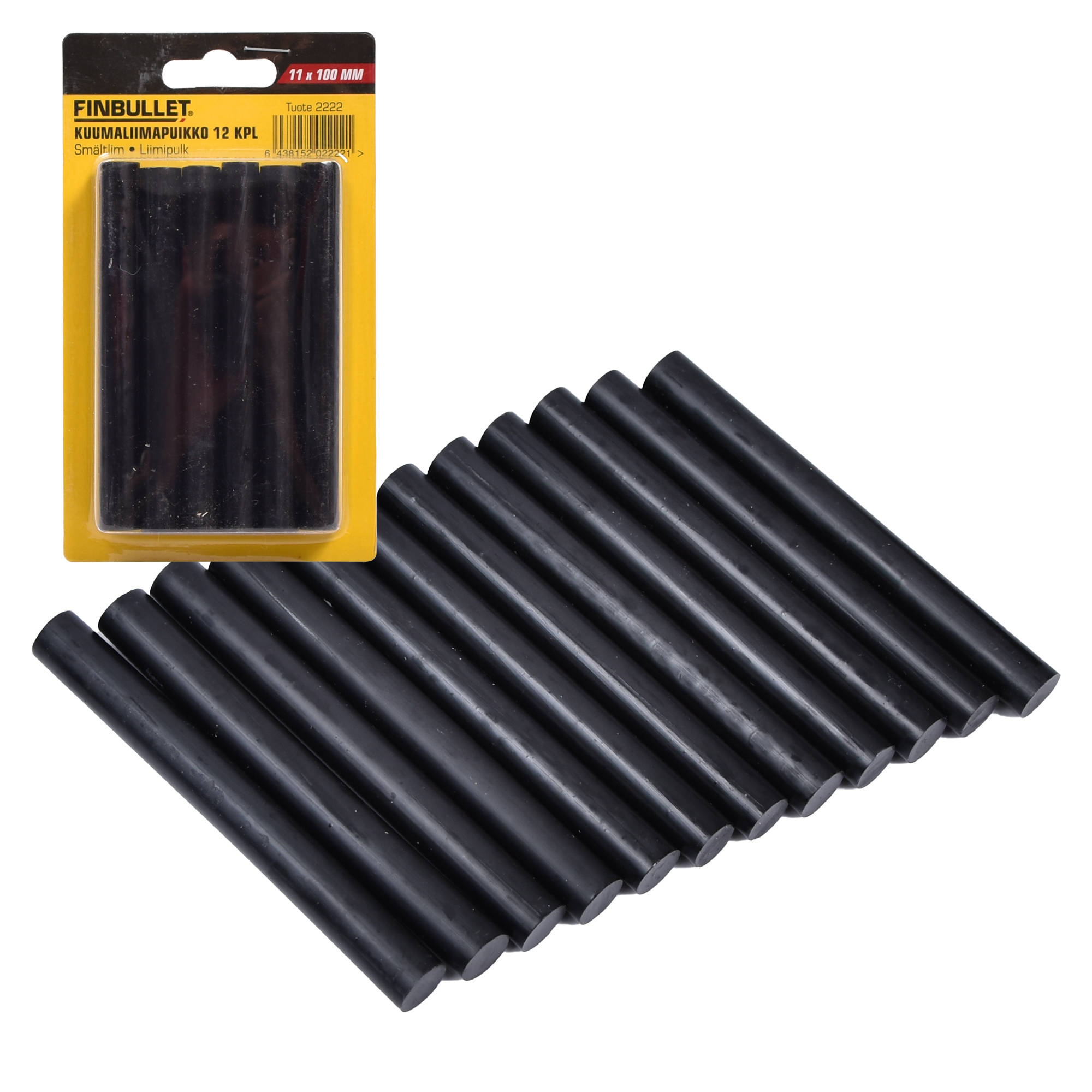 Finbullet kuumaliimapuikkosarja 12 kpl, 11x100 mm, musta.