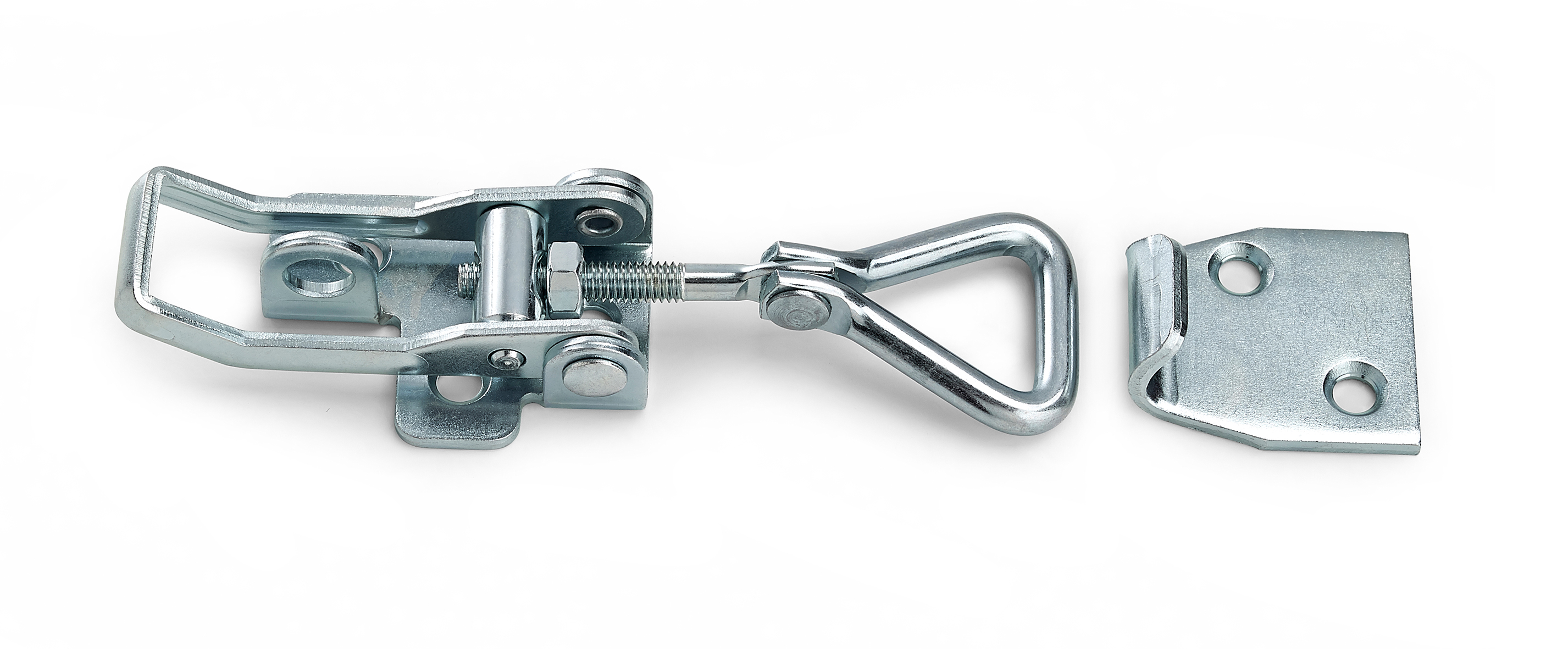 Teräksinen riippulukolla (sanka max. 9 mm) suljettava sinkitty laatikonsalpa vastakappaleineen