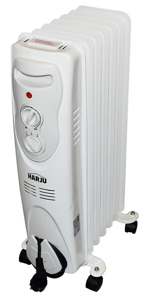 Helposti siirrettävä öljytäytteinen HARJU-lämmitin kuiviin tiloihin. Lämmittimessä on kaksi lämmitystehovalintaa. Ylikuumenemissuoja ja kaatumissuojakytkin varmistavat turvallisen käytön.