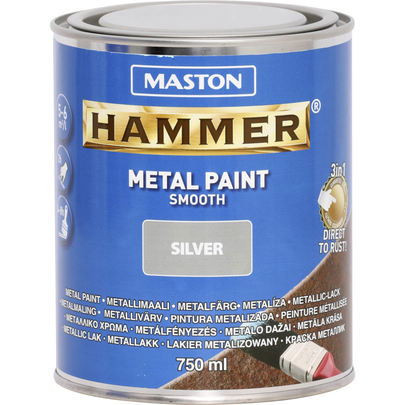 Maston Hammer Smooth metallimaali 750 ml hopea – näyttävä suoja metallipinnoille
