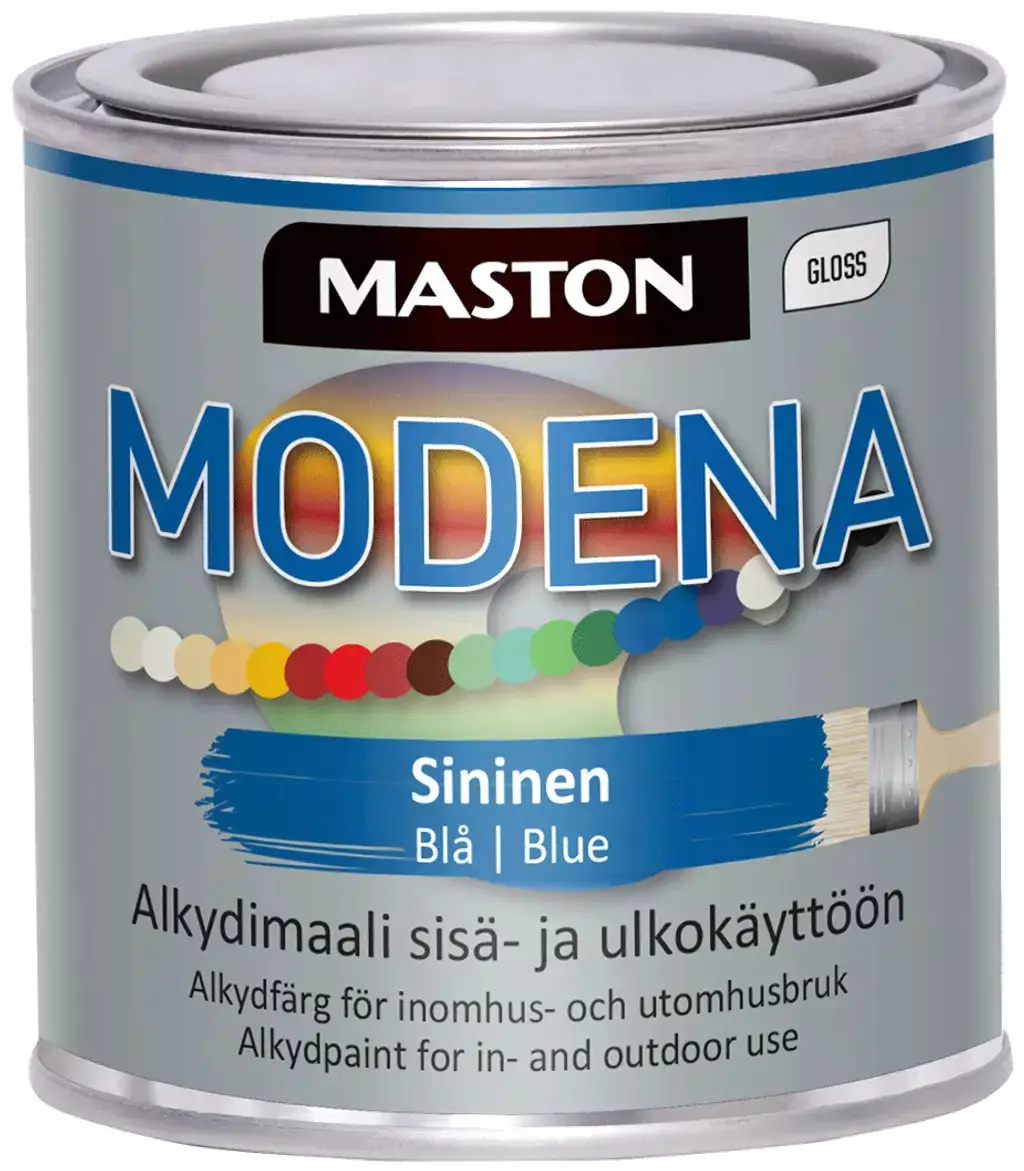 Modena on erittäin nopeasti ilmakuivuva alkydimaali sisä- ja ulkokäyttöön. Soveltuu metalli- ja puupinnoille. MODENA voidaan levittää siveltimellä, telalla tai ruiskulla. Kuivumisajat (+20°C): Pölykuiva n. 30 min. Mikäli tarvitaan useampia maalikerroksia on maalaus suoritettava 30 min – 4 h kuluessa. Tai kun maali on läpikuiva eli vähintään 7 vrk. Riittoisuus: 8-10m²/l. Ohennus ja työvälineiden pesu: Maston Xylen.