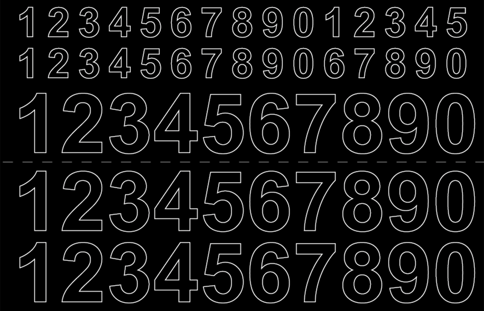 Kolmet mustat vinyylinumerot 0-9 kooltaan 13 ja 26 mm tarrakiinnityksellä arkilla postilaatikoihin ja nimikyltteihin