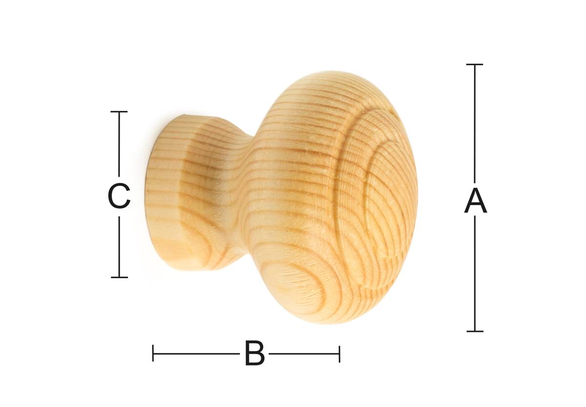 Nuppi puuta. Sisältää ruuvin. Tyyppi Frank A: 39 mm B: 39 mm C: 25 mm Puuta Mänty