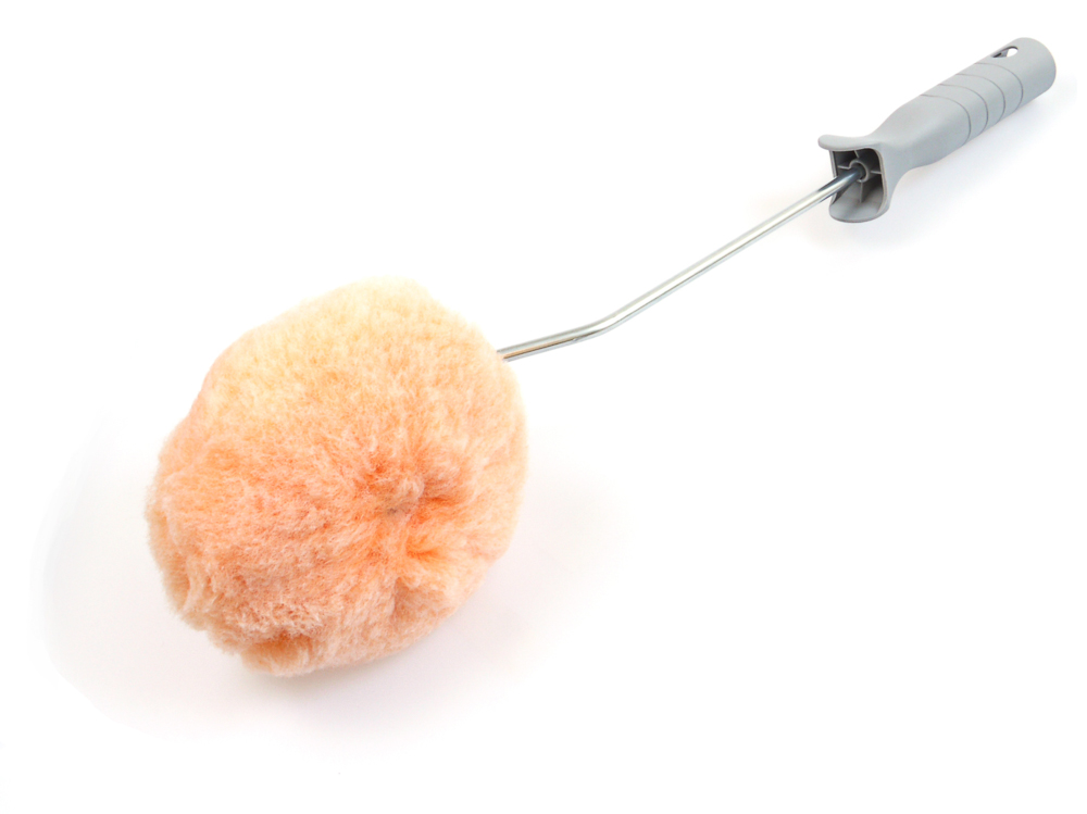 Nurkkatela salmon + varsi Erikoistela nurkkien ym. ahtaiden paikkojen maalaukseen. Tela + varsi Telan halkaisija 13cm Telan paksuus n.7,5cm Varren pituus 41cm
