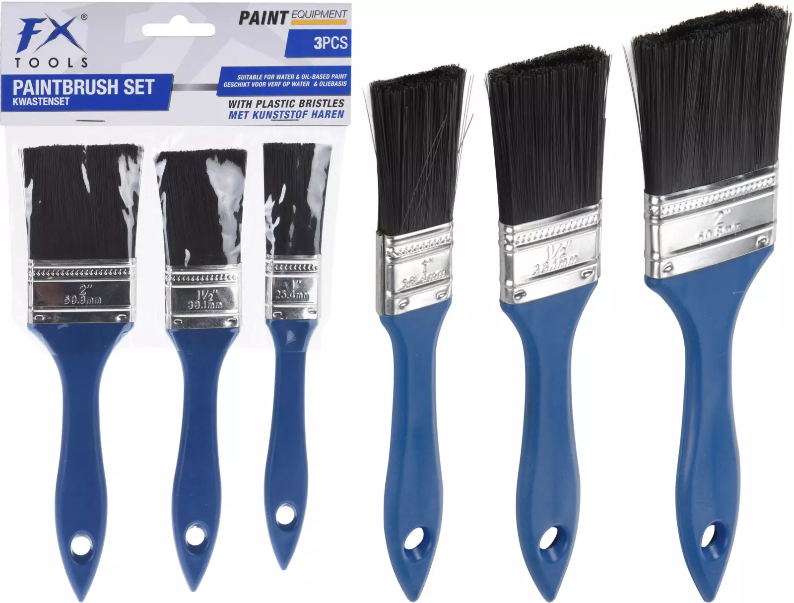Sivellinsarja 3 kpl/pkt Kolmen osan sivellinsarja, jossa on sininen PP-holkki ja musta PP-sivellinkarva. Kokoja: 1 tuuma, 1,5 tuumaa ja 2 tuumaa. Siveltimet soveltuvat sekä vesipohjaiselle että öljypohjaiselle maalille. Erinomainen valinta maalaustöihin!