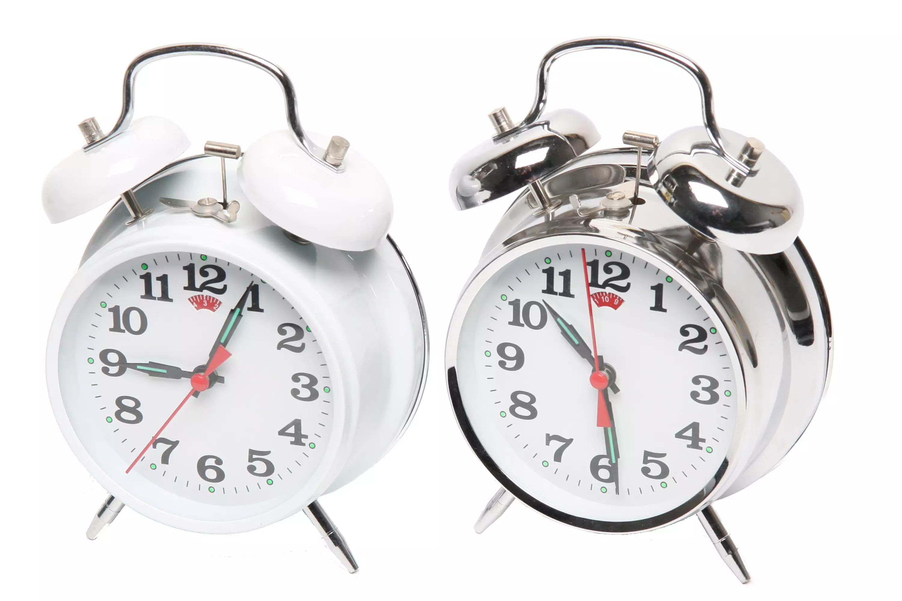 Metallikuorella oleva perinteinen vedettävä herätyskello.