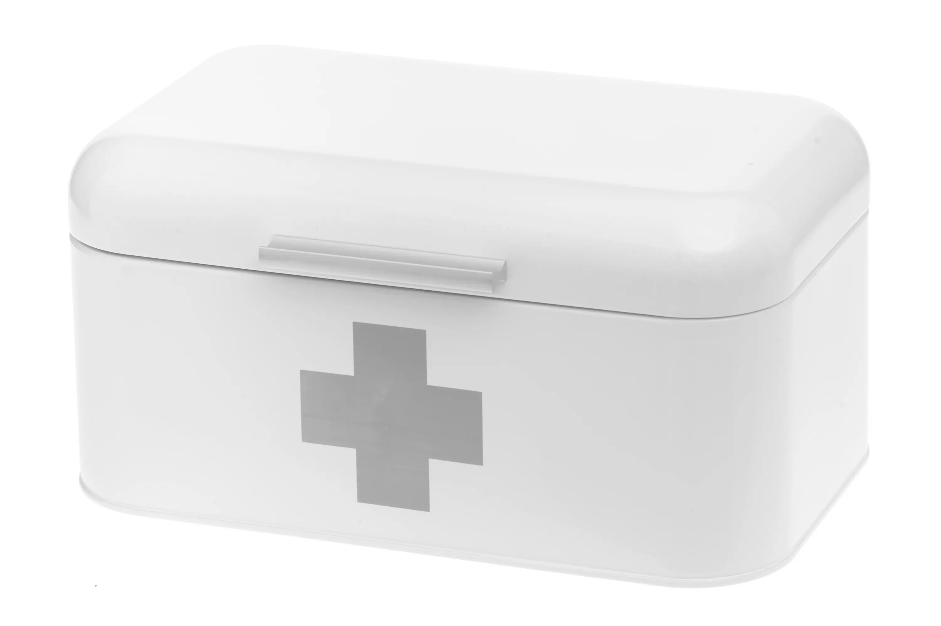 Metallinen saranallinen lääkelaatikko. Sopii esimerkiksi kotiin, mökille, veneeseen, verstaalle ja autotalliin.