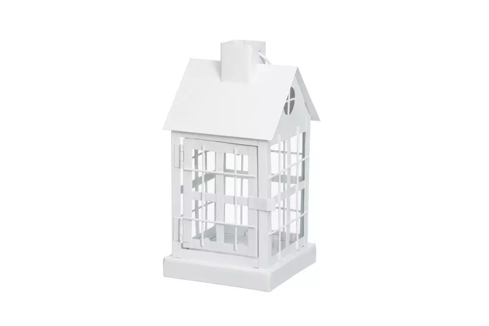 Talon muotoinen metallilyhty tuo kodikasta tunnelmaa ja lämmintä valoa ympärilleen. Lyhdyssä on harjakatto ja savupiippu, ja sen lasipaneelit päästävät valon kauniisti loistamaan. Tyylikäs yksityiskohta niin sisustukseen kuin terassille.