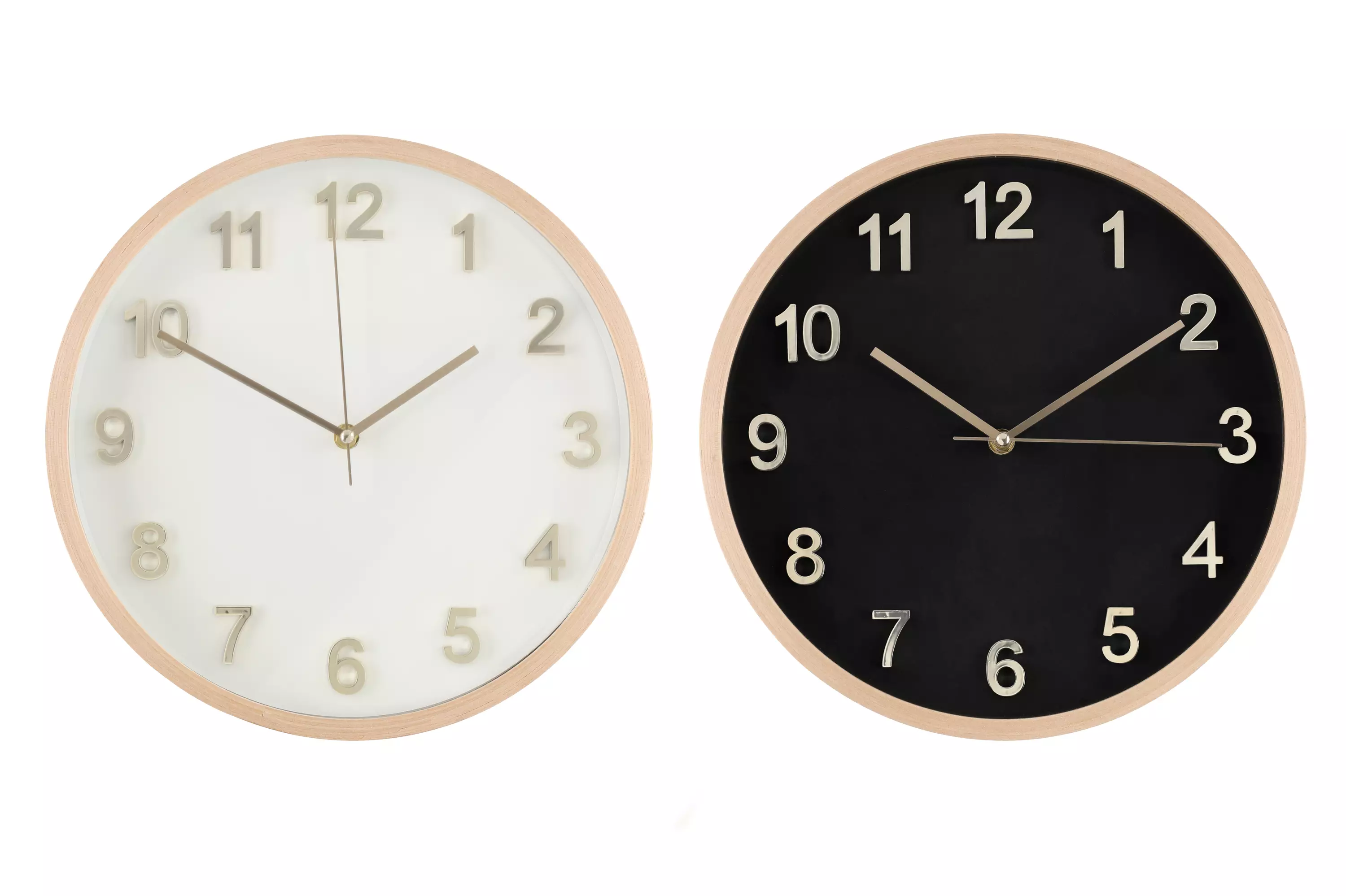 Yksinkertaisen tyylikäs seinäkello, joka sopii loistavasti minkä tahansa tyyppiseen huoneeseen. Kauniit kullanväriset numerot. Kehys on puukuviota. Muovikehys ja hiljainen koneisto.