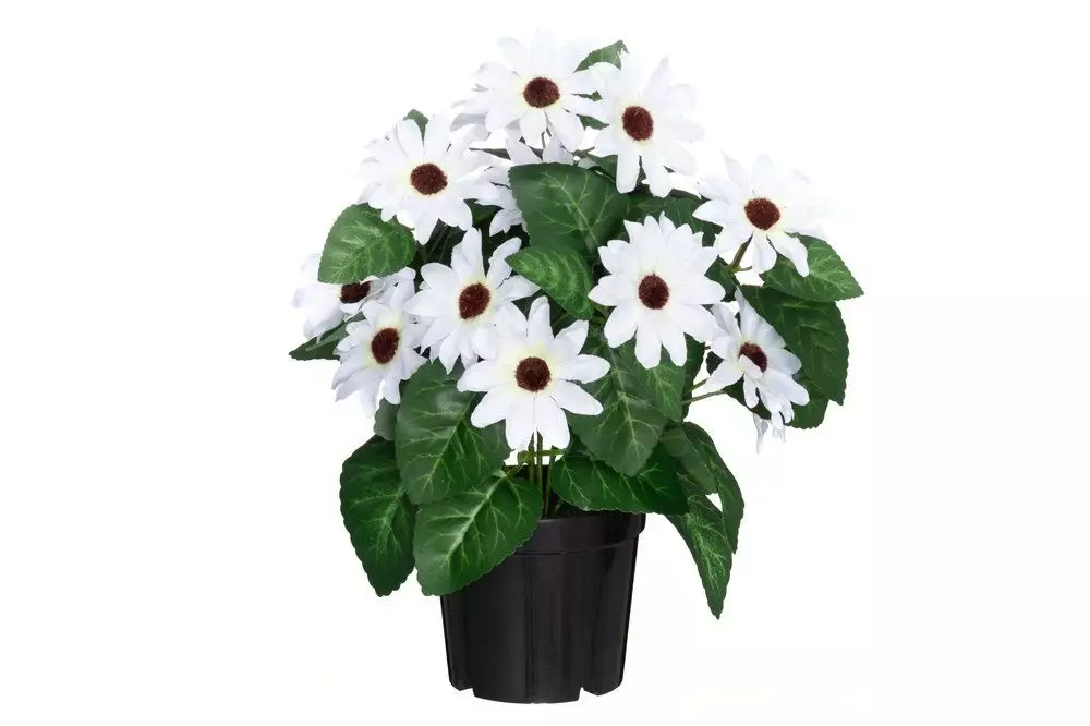 4Living Tähtisilmä ruukussa valkoinen. Aidonnäköinen UV-suojattu tekokasvi, korkeus 27 cm.