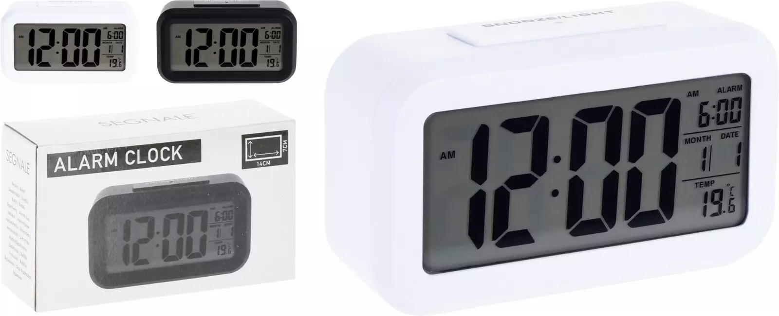 Tämä tyylikäs herätyskello on varustettu suurella LSD-näytöllä, jossa on taustavalo, joten kellonajan lukeminen onnistuu myös pimeässä. Kello tarjoaa kätevän torkkutoiminnon, jotta voit herätä rauhassa. Kello toimii 3 x AAA-paristoilla (paristot eivät sisälly pakkaukseen). Saatavilla kahdessa eri värissä: musta ja valkoinen.