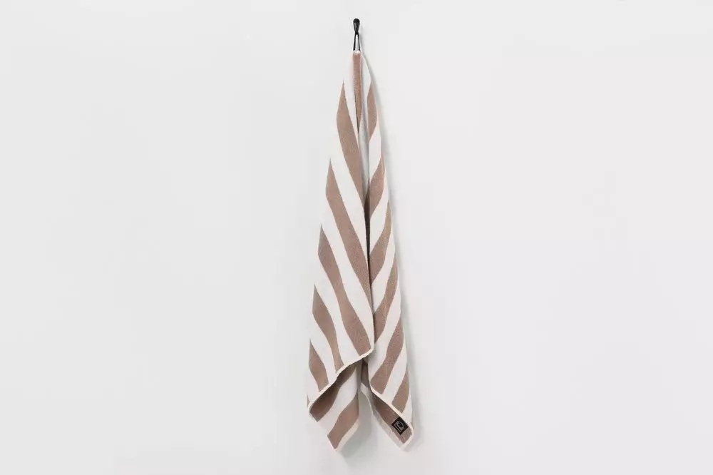 Pehmeä, paksu ja miellyttävän tuntuinen raidallinen kylpypyyhe. Ripustuslenkki pitkällä sivulla. Koko 70 x 140 cm. Materiaali 100 % puuvilla. Pesu 60 asteessa. Ökotex.