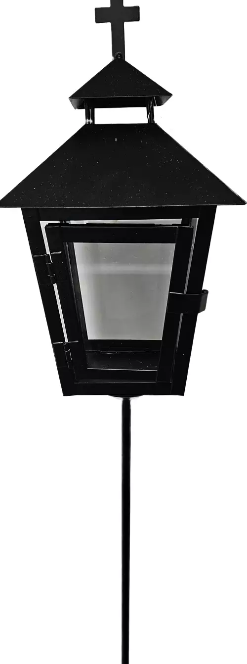 Avainsanat: hautakynttilän lyhty, muistomerkki, risti, musta, teräs, lasi, hauta, kynttilä, muisto
