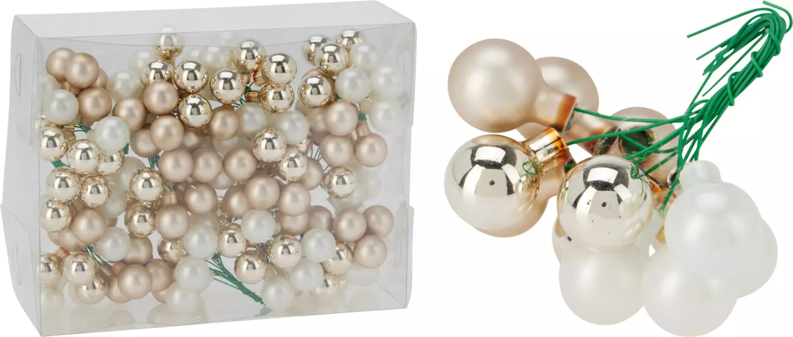 Kuusenpallot 20 mm – Shamppanja / Valkoinen lasi (12 kpl)