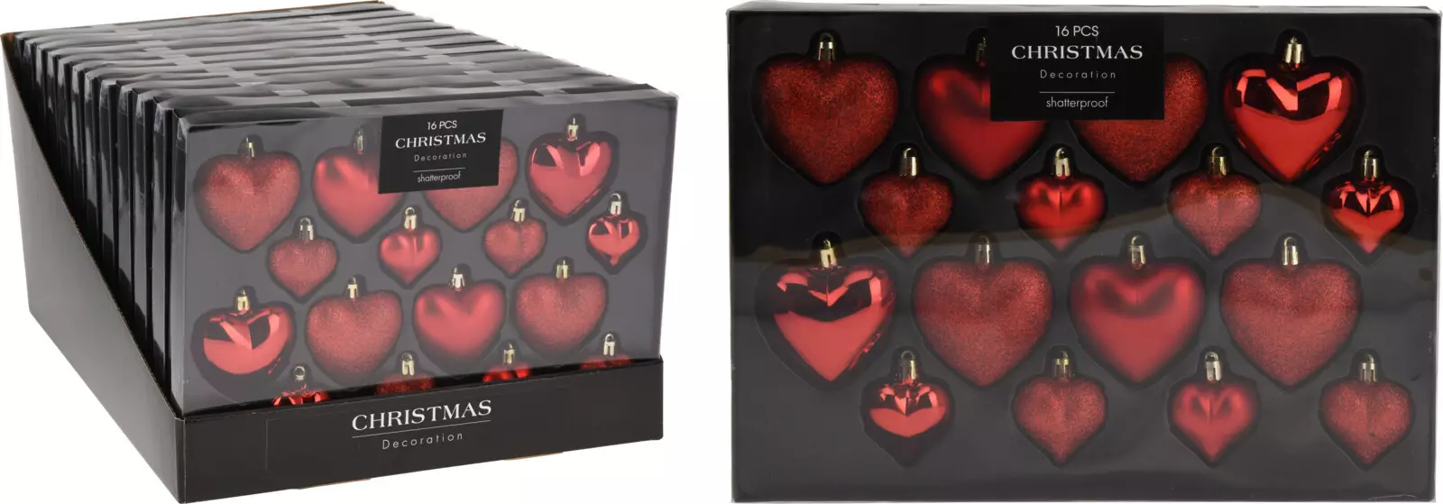 Koristele joulukuusi perinteisen punaisilla sydämenmuotoisilla kuusenpalloilla. Setti sisältää 16 sydämenmuotoista joulupalloa, joissa on kiiltävä, mattapintainen ja glitter-viimeistely. Kaunis punainen sävy tuo kuuseesi klassista joulutunnelmaa.