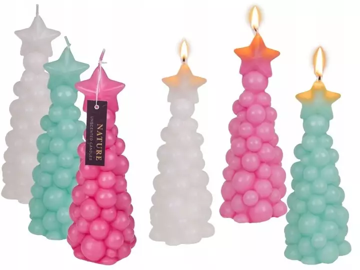 Tämä koristeellinen joulukuusen muotoinen kynttilä on hauska ja tunnelmallinen lisä joulukoristuksiin. Kynttilä on pakattu läpinäkyvään folioon, joten se sopii myös pieneksi lahjaksi tai lisäyksesi lahjapakettiin. Saatavilla kolmena värivaihtoehtona, myydään yhtenä kynttilänä satunnaisena mix-pakkauksena.