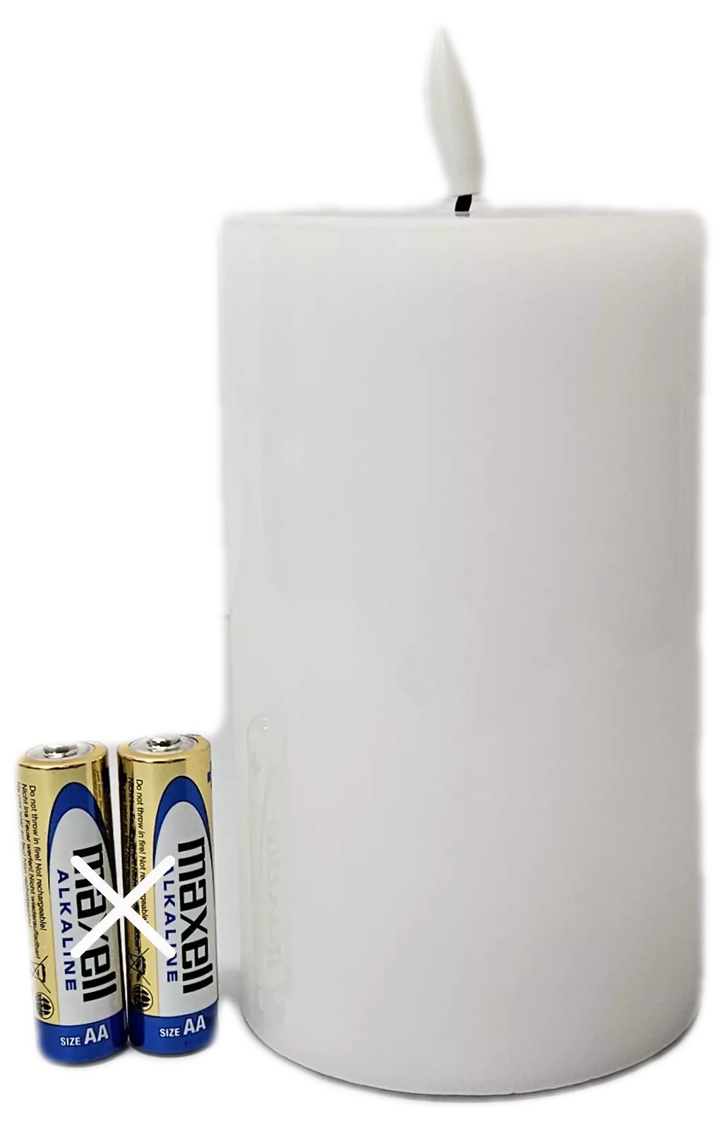 3D LED VAHAKYNTTILÄ o 7.5cm, korkeus 12,5cm ATO VALKOINEN KYNTTILÄVAHA VÄLKKYVÄ 3D LED LĀMIMIN KELTAINEN LIEKKI. PARISTOT 2AA eivät sisally pakkaukseen