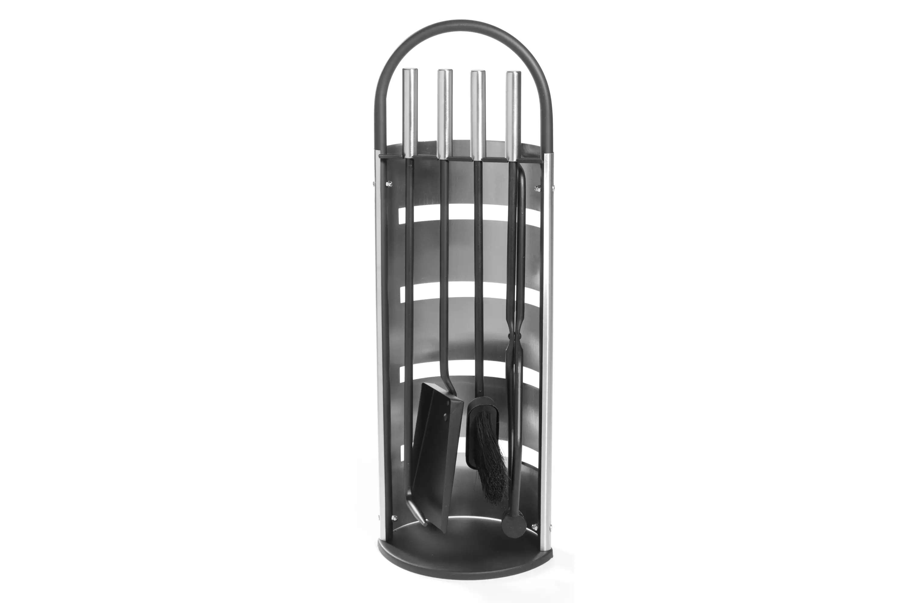 Tyylikäs takkavälinesetti vaativampaankin makuun, valmistettu laadukkaasta ruostumattomasta teräksestä. Setti sisältää telineen, harjan, tuhkalapion, kohennuskoukun ja pihdit.Telineen korkeus 67 cm, leveys 23 cm. Välineiden pituus n. 55,5 cm.