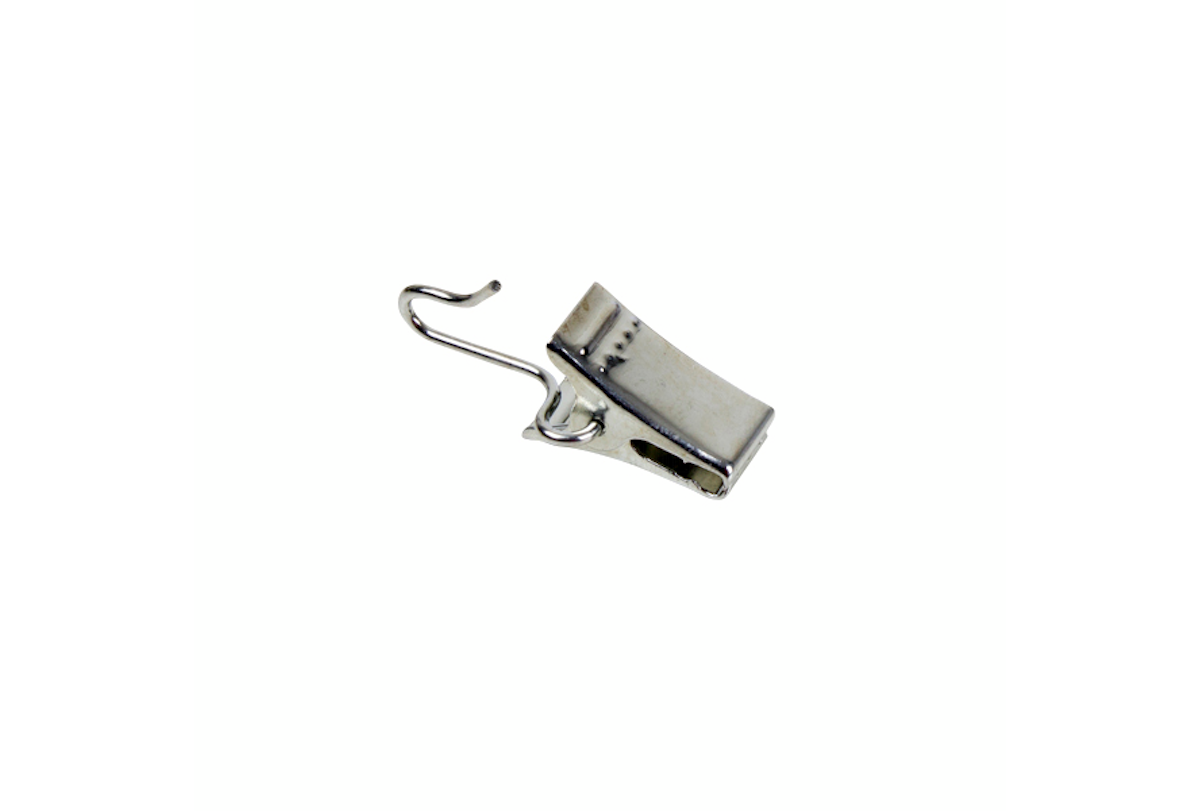 Sisältää liu'ut ja pysäyttimet. Liuku sopii lippakiskolle ja U-kiskolle. Mukana koukullinen nipistin, joka on tarkoitettu verhon kiinnittämiseen.