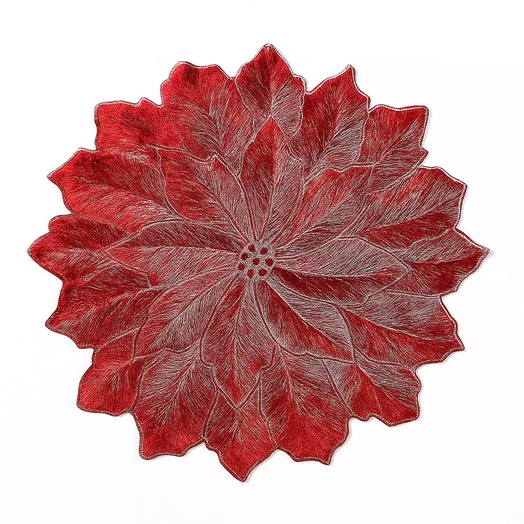 Punainen pöytätabletti lehtimuotoilulla on täydellinen valinta joulun ja muiden talvijuhlien kattauksiin. Eloisa väri ja kaunis tekstuuri tuovat pöytään lämpöä ja juhlan tunnelmaa.