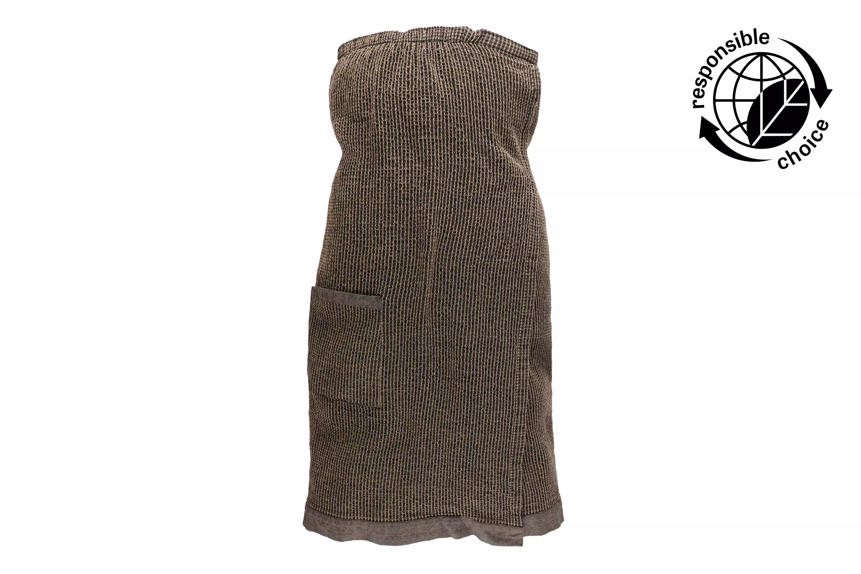 Kietaisupyyhe on rento ja vaivaton asuste. Kierrätyspuuvillaisille Kenno-saunatekstiileille on ominaista kankaan pehmeys ja eloisa tekstuuri. Leveät chambray-kanttaukset puolestaan antavat tuotteille lokoisan luonteen. Tarranauhakiinnitys.