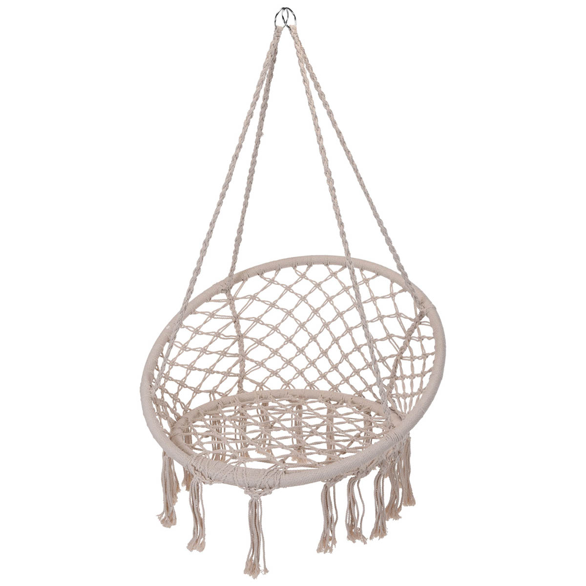Sisä- ja ulkokäyttöön sopiva Livia riipputuoli voidaan kiinnittää suoraan kattokoukkuun tai puun oksiin, paikasta riippuen. Puuvillasta punottu makrame on käytössä miellyttävän tuntoinen ja riipputuolin voi vielä viimeistellä värikkäillä tyynyillä. Riipputuolin halkaisija on 80 cm ja istuinosan halkaisija on puolestaan 60 cm. Maksimipaino riipputuolissa on 120 kg.