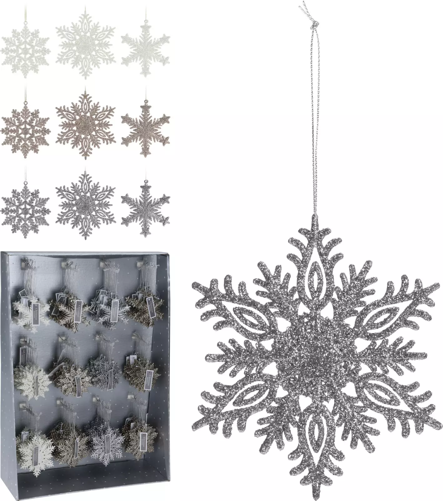 Roikkuva lumihiutale – hopea, 10 cm