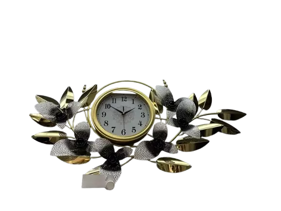Upea Seinäkello 96×55 cm on näyttävä ja ylellinen sisustuselementti, joka yhdistää kullan, mustan ja valkoisen harmoniseksi kokonaisuudeksi. Kellon ympärillä kiemurtelevat metalliset lehdet ja kukat tuovat siihen kolmiulotteista syvyyttä ja koristeellisuutta. Kullanhohtoiset yksityiskohdat ja mustat ruusumaiset kukat luovat elegantin ja tyylikkään ilmeen, joka sopii erityisesti moderniin tai klassiseen sisustukseen.