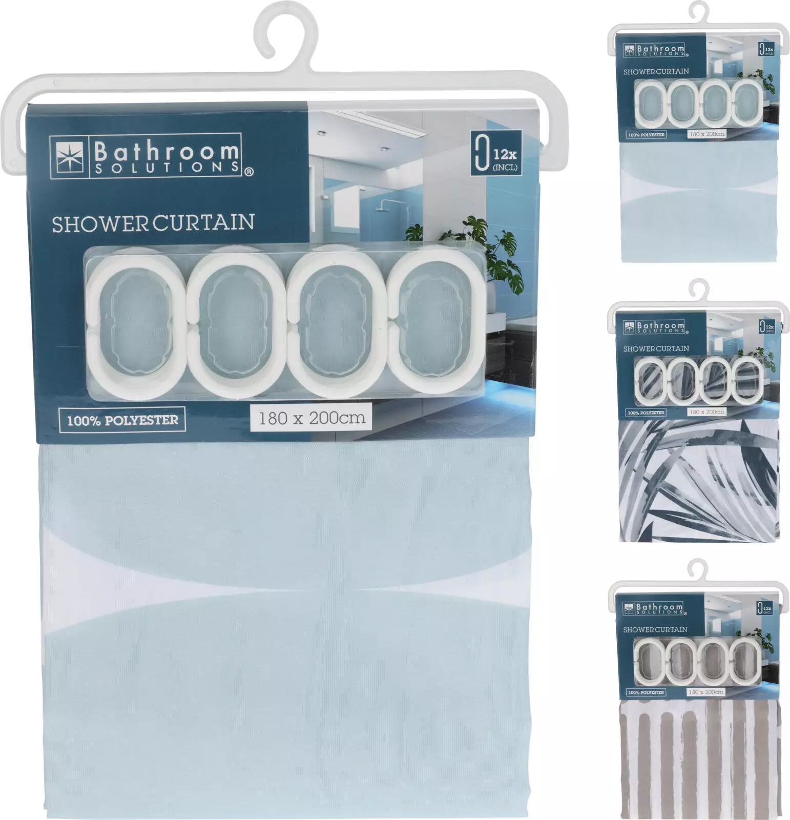 Valmistettu 100 % polyesteristä (85 GSM), verho on kevyt, nopeasti kuivuva ja helppo kiinnittää mukana tulevilla 12 PP-koukulla. Kolme erilaista kuosia ja väriä tarjoavat vaihtoehtoja erilaisiin sisustustyyleihin.