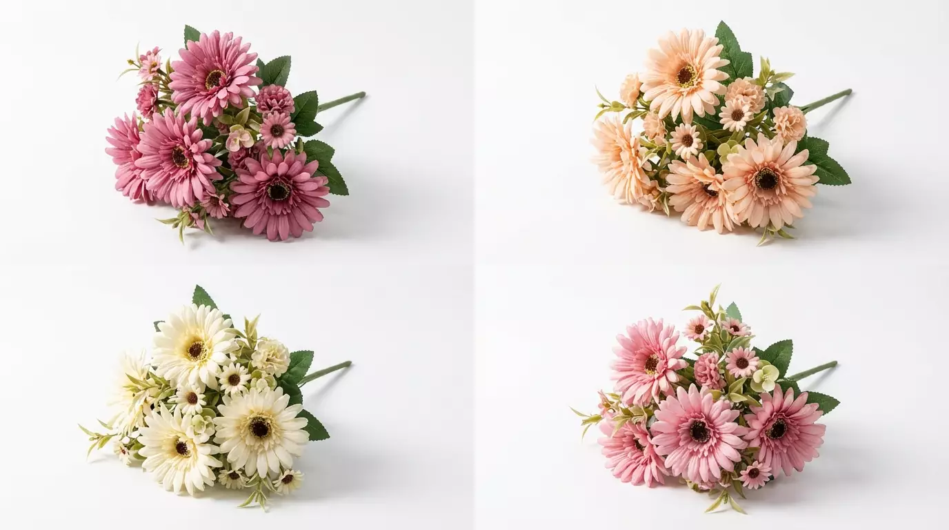 Tekokukkakimppu säilyttää kauniin ulkonäkönsä ympäri vuoden ja toimii myös tiloissa, joissa luonnonvalo on vähäistä.