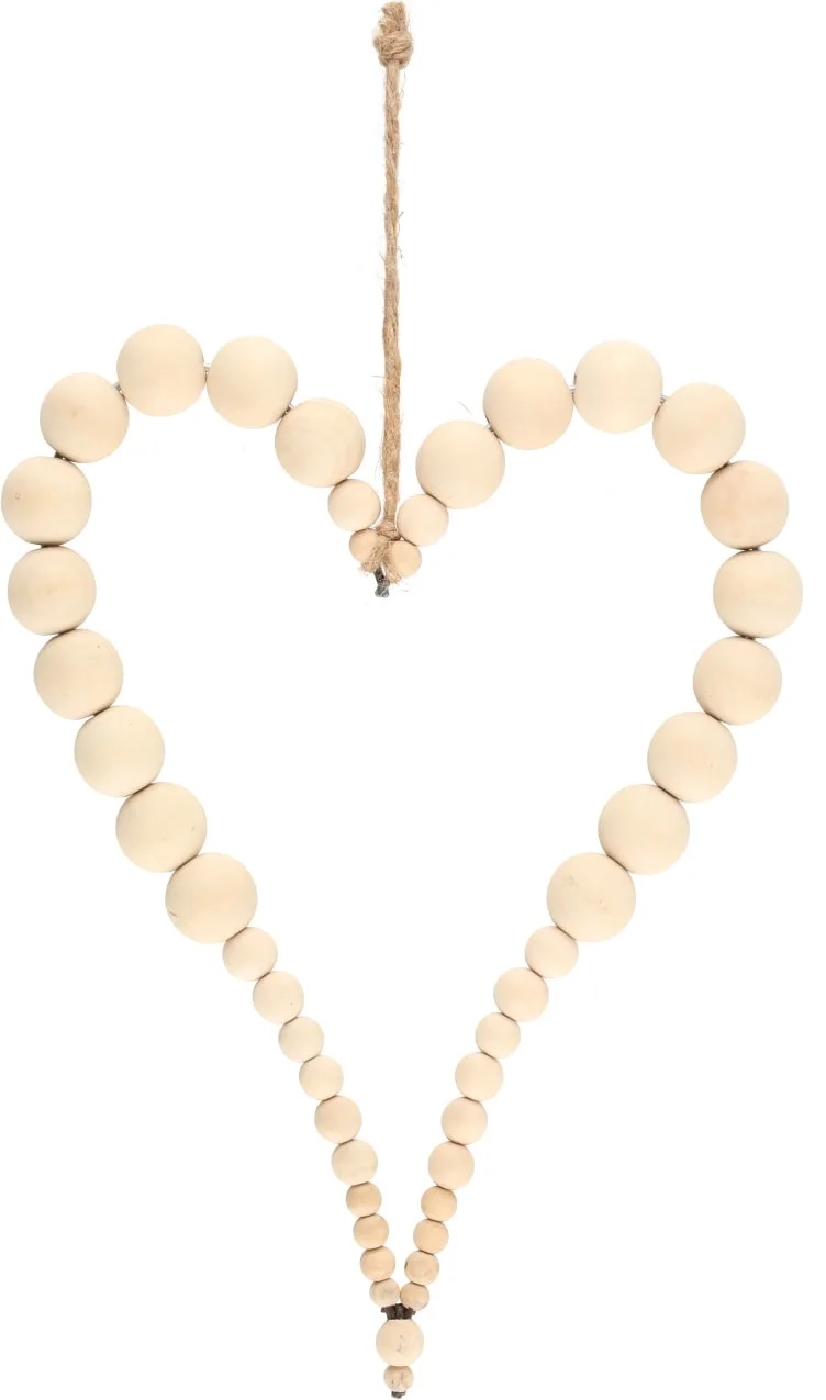 Tyylikäs puuhelmistä valmistettu sydämen muotoinen kranssi. Kaunis koriste kotiin vaikka vuoden ympäri.