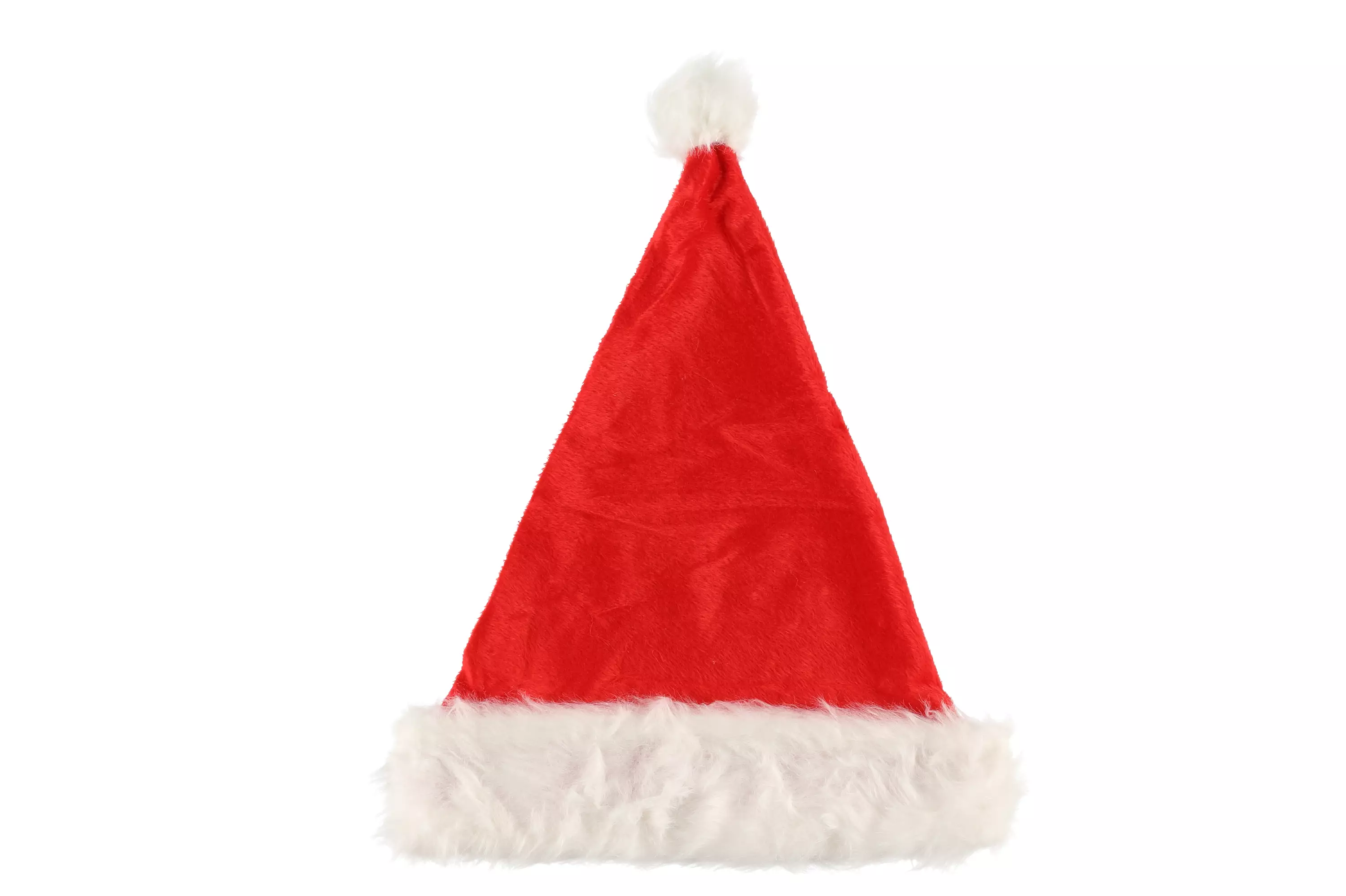 Ihastuttava samettinen tonttulakki muhkealla karvareunuksella ja tupsulla. Materiaali polyesteri.