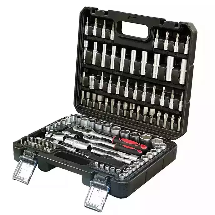 Tämä 108-osainen hylsyavainsarja tarjoaa laajan valikoiman 1/4" ja 3/8" hylsyjä, bittikärkiä ja lisävarusteita niin auton huoltoon, rakentamiseen, remontointiin kuin harrastekäyttöön. Sarja on pakattu tukevaan muovisalkkuun, jossa on metalliset salvat, vahva sarana ja selkeä sisämuotoilu, joka pitää jokaisen osan turvallisesti paikoillaan.